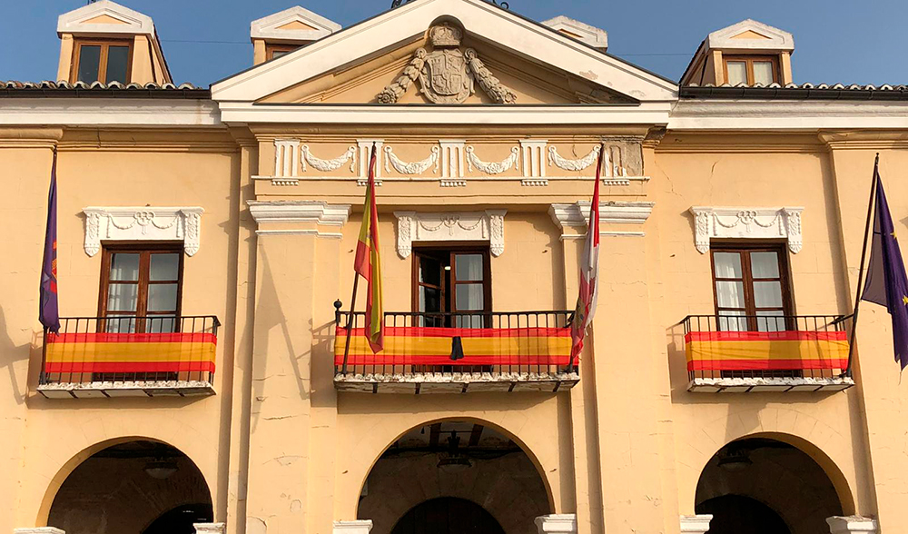 Con motivo del primer aniversario del inicio de la pandemia, la Junta de Gobierno Local de Simancas ha aprobado la instalación de banderas con crespón negro en la fachada del Ayuntamiento, en memoria de las más de 100.000 víctimas de la Covid-19 en nuestro país.
