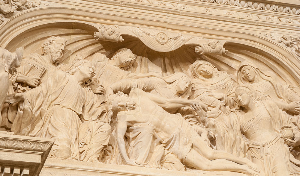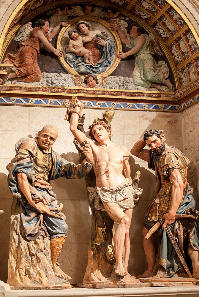 Pero no solo su torre es digna de admiración. El resto del templo, todo de piedra y compuesto por tres naves de estilo gótico y ábside poligonal, se alza imponente por encima de los tejados de las casas. Una catedral más nacida de esa Tierra de Campos antaño próspera que, además, guarda otra joya en su interior. Hablamos del retablo del altar mayor. Una magnífica obra plateresca salida de las manos maestras de uno de los mejores escultores castellanos, Juan de Balmaseda.
