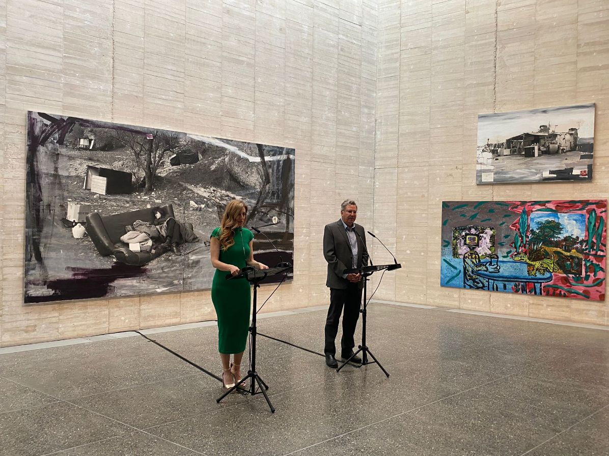 La viceconsejera de Acción Cultural, Mar Sancho, acompañada del director del Museo de Arte Contemporáneo de Castilla y León, Álvaro Rodríguez Fominaya, y del artista Juan Ugalde, han presentado las tres exposiciones que se han abi9erto al público, con entrada libre, durante los meses del verano.