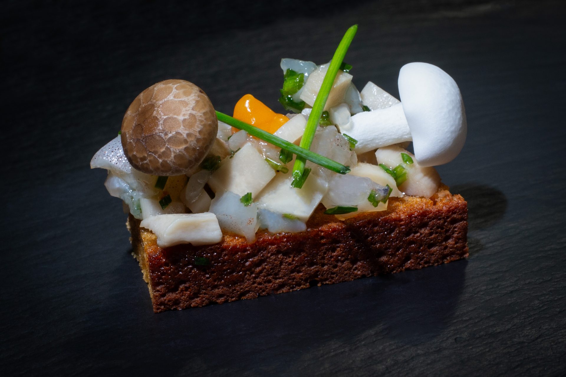 A toda esta carta de selecta imaginación culinaria y micológica y de maridajes sorprendentes, se suman clásicos como una crema de hongos edulis con un bombón de foie, manitas de cerdo rellenas de setas o unos boletus con alioli de miel, porque el dulce también combina perfectamente con los sabores del bosque de otoño.