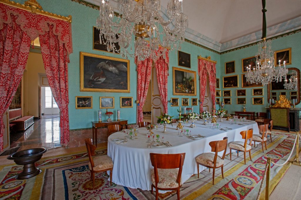 A diferencia de la planta alta, más íntima, las estancias de la planta baja del palacio te llamarán la atención por su decoración más representativa y fastuosa. Cada una de ellas recibe el nombre de la pintura al fresco que decora su bóveda. Tenemos la Sala de Hércules, la de la Justicia, la Fuente de la Galatea o la espectacular Sala de Mármoles o de Europa.