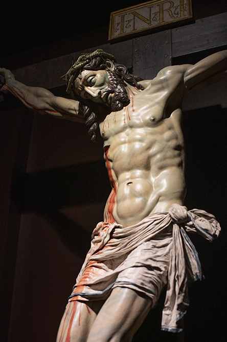La madera estucada y policromada se hace un hueco representando los últimos momentos de la vida de Jesús.