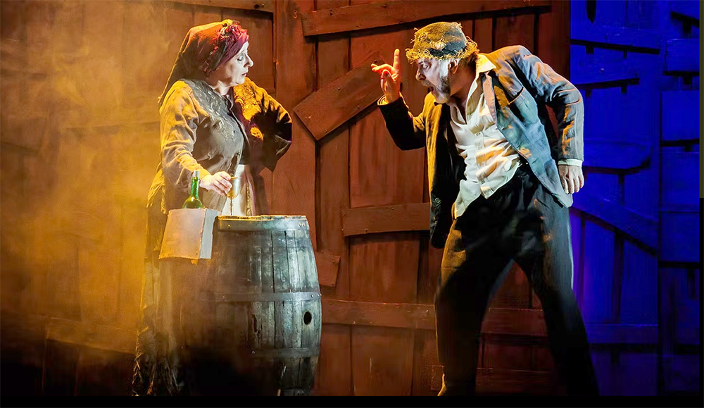 Por su parte, Blanca Izquierdo se viste en el papel de la Madre, Fantasma, Enferma, Doña Viña, Tres, Pelagra y Burlona.